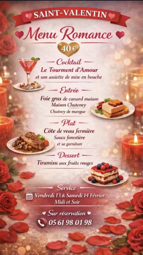 Que ce soit à Salies-du-Salat, Aspet ou Saint-Martory les restaurants du territoire vous ont réservé des menus spéciaux pour le fêter la Saint-Valentin avec votre moitier !